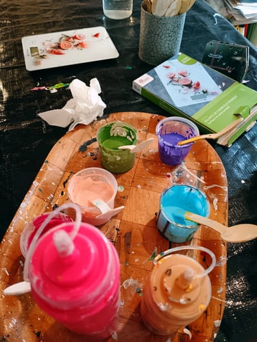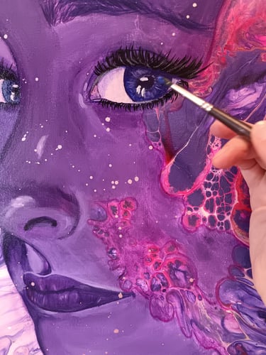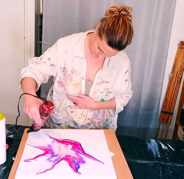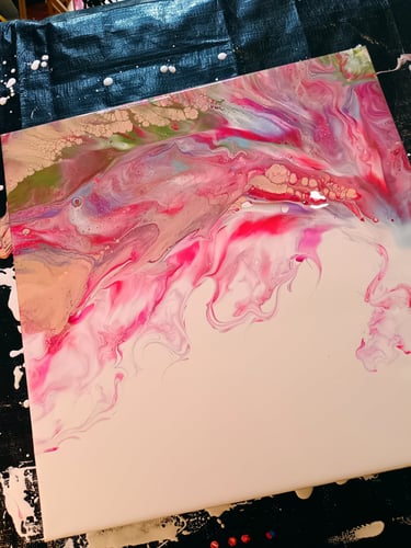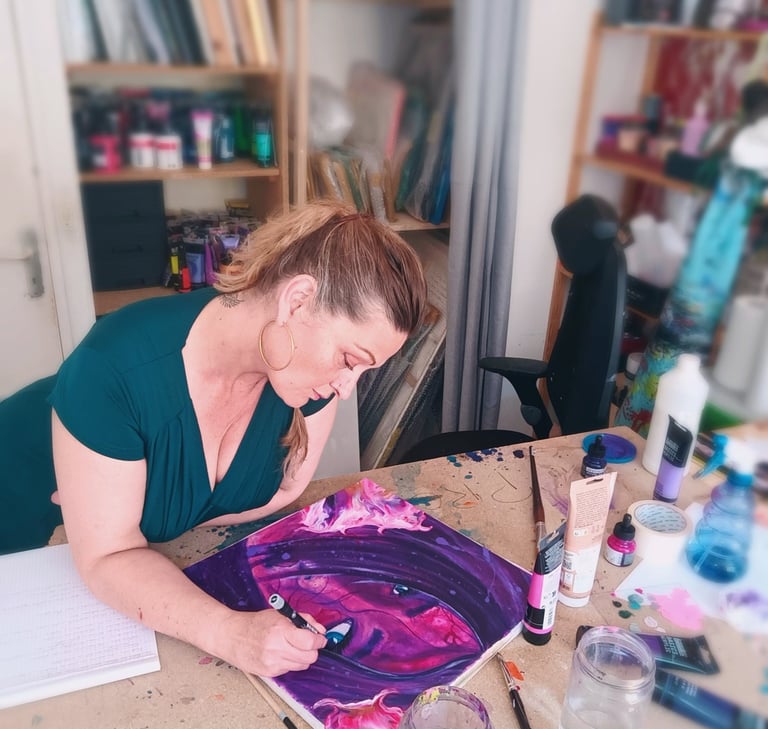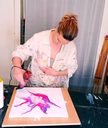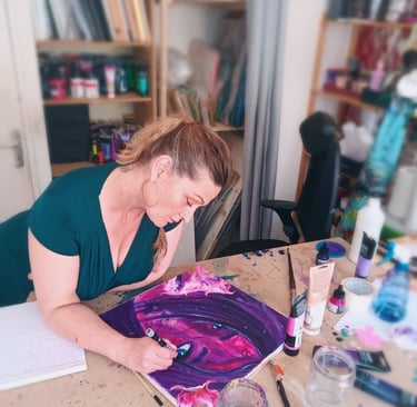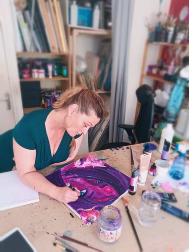 Je le commence par la maîtrise de la technique de l'acrylique fluide, aussi appelée "pouring", qui est une véritable métaphore de la vie.