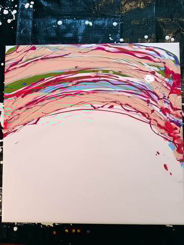 Je me laisse porter par le mouvement de la peinture qui se mélange et se meut sur la toile, acceptant et embrassant l'inattendu.